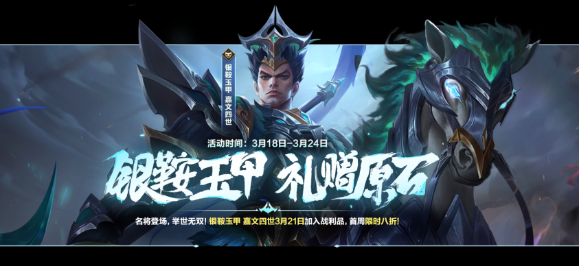 名将登场,举世无双!银鞍玉甲 嘉文四世将于3月21日加入战利品,首周限时享受八折优惠!