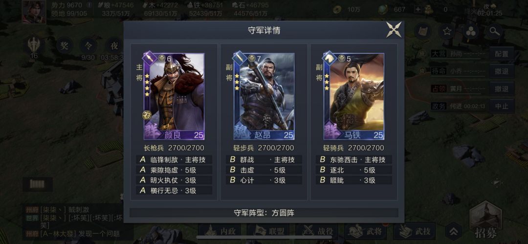 这里要说下的就是在打2~4级地都可以采用1号占位,只有在开荒5级地的时候就需要我们主意了,需要我们根据对面主将位置来改变占位。我给大家截图5级地3位主将,大家可以在打地前看主将是谁来提前改变占位。