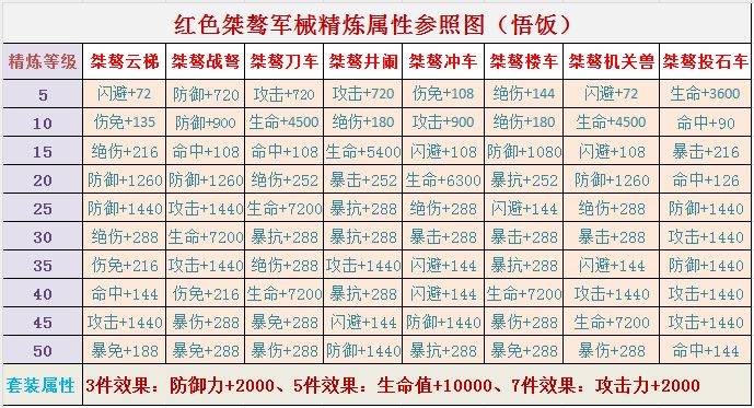 桀骜军械的优秀有目共睹,但整体养成难度相比天命军械是成倍增长,虽然众多玩家短期内无法成就,但是氪金玩家如果选择混合搭配、逐步替换的方式,也能够收获更多的热门属性(攻击力、闪避、命中),在我一番对比后发现,5桀骜3天命组合(桀骜云梯+桀骜战弩+天命刀车+桀骜井阑+天命冲车+天命楼车+桀骜机关兽+桀骜投石车),这样的搭配,另辟蹊径,兼顾了攻击力、命中和闪避属性,适合热衷竞技体验的大佬玩家。桀骜军械整体提升的属性和战力加成也有效弥补了因为这个混合搭配牺牲掉的天命套装7件激活的套装属性攻击力+1600。使用这种混合搭配,对于金色军械提升到达瓶颈期无法再进一步的高端玩家,提供了更高的追求,且还能兼顾一定的军械套装效果,使攻击力、命中、闪避这些热门的竞技属性平衡的同时,还能兼顾更多的有用属性。