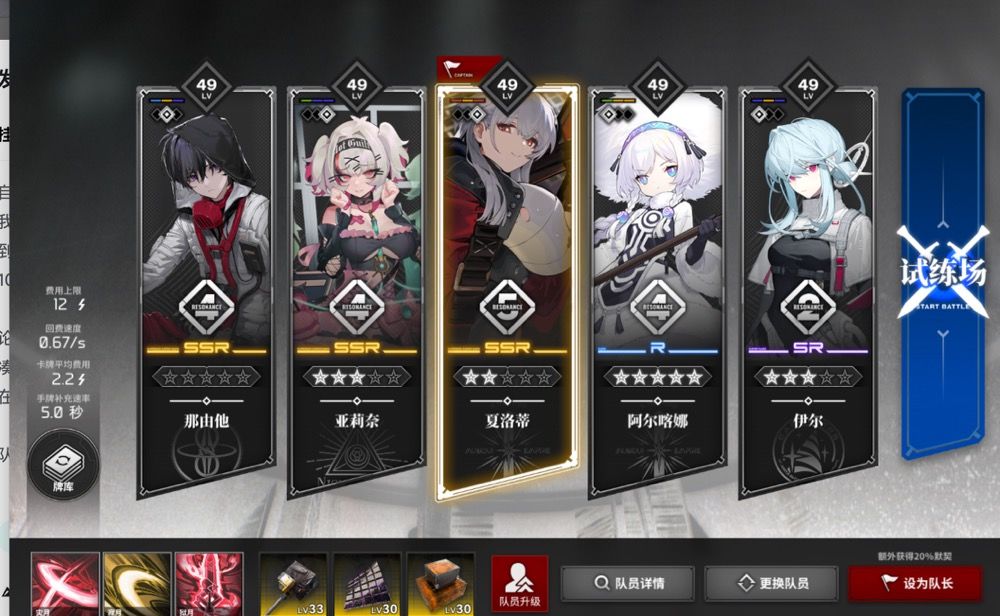 这里阿尔我带了ur枪,可以帮助回收弃牌,可以快速增加夏洛蒂循环大招的几率。