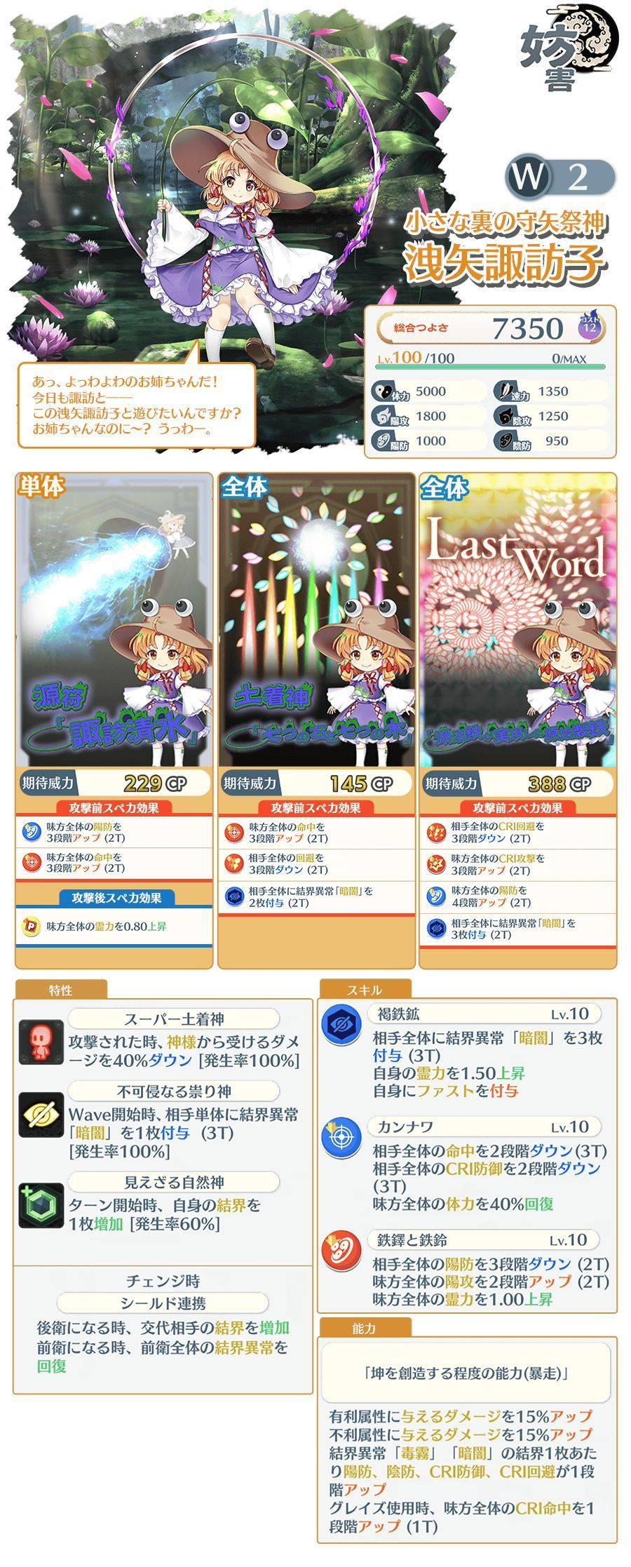 全体2暗2p破盾,技能给3,比MV铃仙好在有破盾,