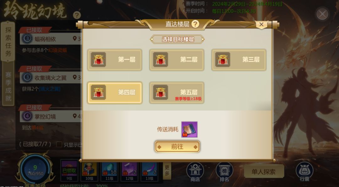 2、赛季最高等级达到55级左右,上线的时候顺便接取玲珑幻境的7个任务;