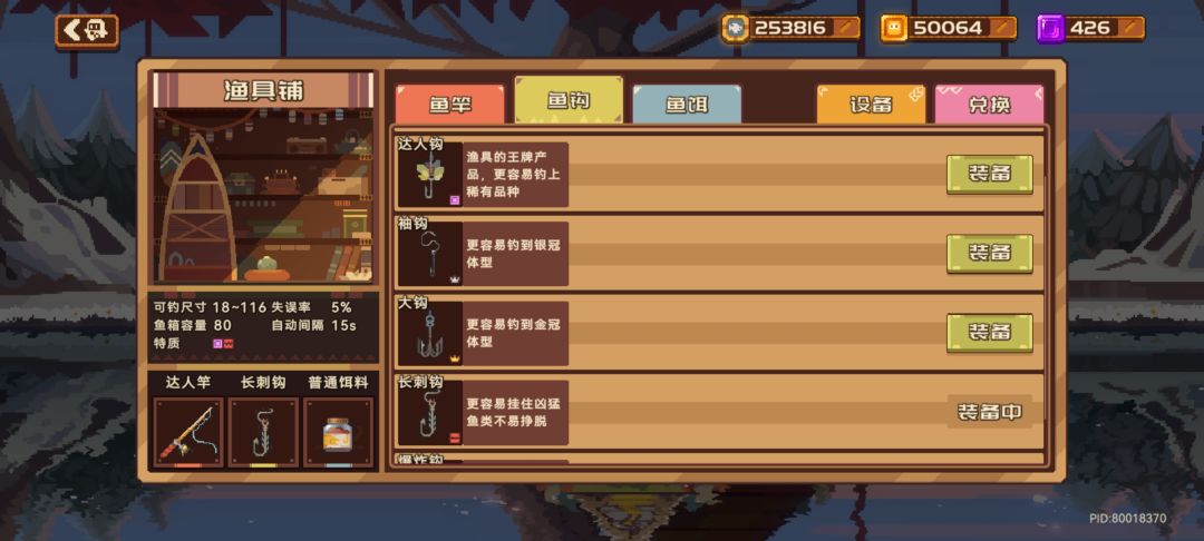 鱼钩的作用,带专精品种特质(专门精通钓哪类鱼),比如专精稀有品种,专精银冠品种,专精金冠品种,专精凶猛品种,鱼钩在后期补图鉴有大作用。附鱼钩: