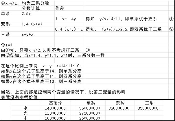 (就是如果主C最高分是双系的,如水火,则辅助过木系的朋友就没有奖励,但是辅助水和火的是OK的)