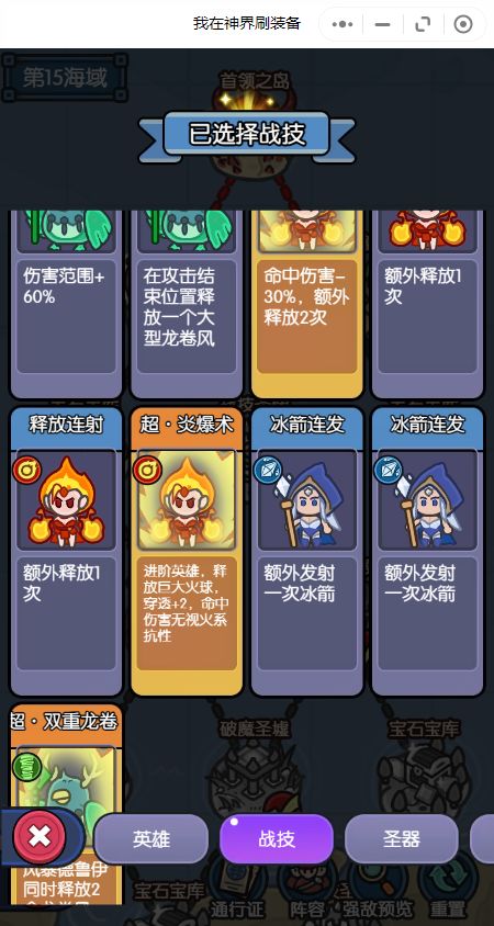 3、对于战技和宝石的选择,我推荐在阵容成型之前优先拿战技,因为前十海域为红色宝石,非核心宝石带来的收益并不高,不如早点养成角色然后拿宝石提升