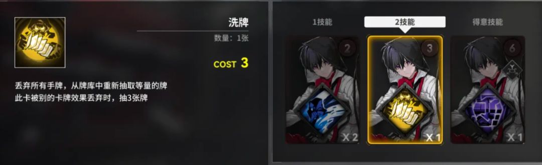也就是说,把【洗牌】和【捭阖】放在手牌的最右边,手里还有1张蓝色卡牌,再发动【谜】就可以保证重新抽到【洗牌】、【捭阖】和【再构之力】,周而复始,达成永动机。