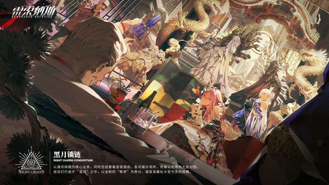 「黑月锁链」以其独占的通讯技术建立了“黑月通讯网络”,为其带来了丰厚的收入和发展机遇。他们行走于“混沌”之中,以全新的“秩序”为养分,发展至今,不仅提供通讯网络服务,还同时经营着连锁酒店、各式娱乐场所和传媒公司。