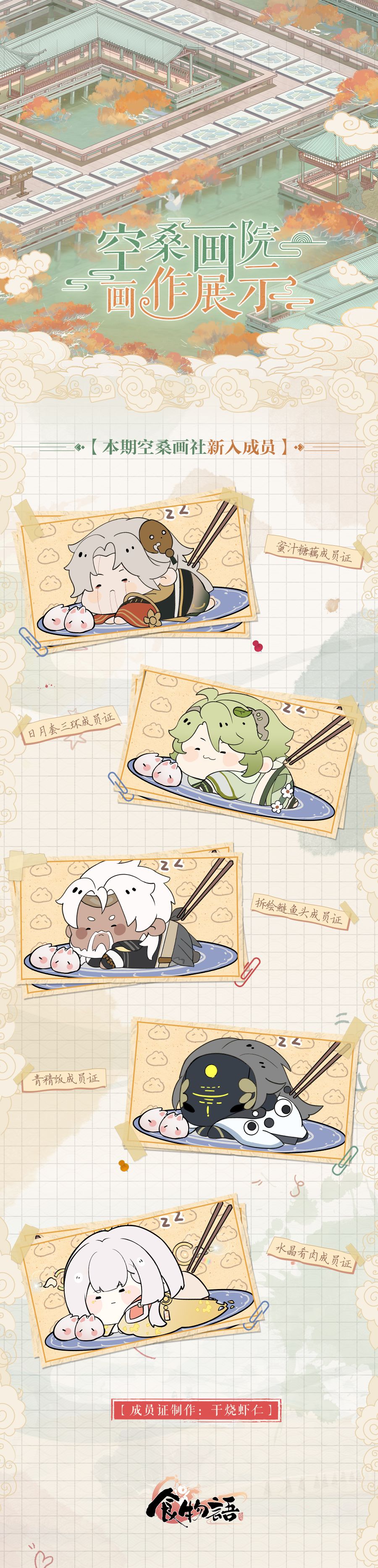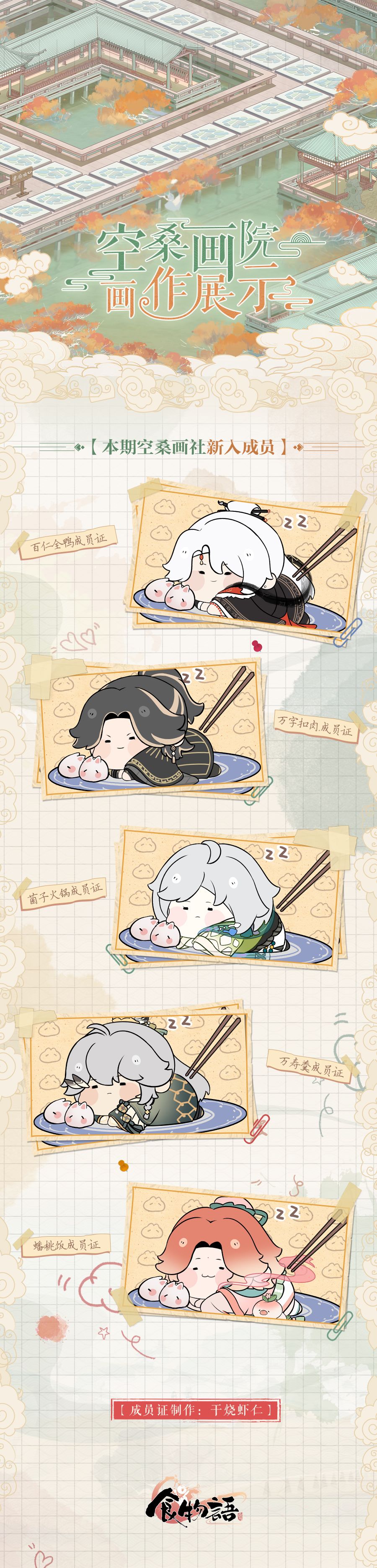 2024年3月19日更新后,【画廊写生】玩法奖励新增尚品画作「百仁全鸭成员证」「万字扣肉成员证」「菌子火锅成员证」「万寿羹成员证」「蟠桃饭成员证」「蜜汁塘藕成员证」「日月套三环成员证」「拆烩鲢鱼头成员证」「青精饭成员证」「水晶肴肉成员证」。