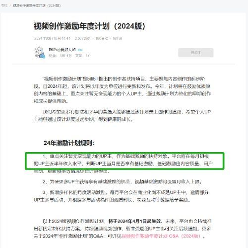 B站发布2024年激励计划