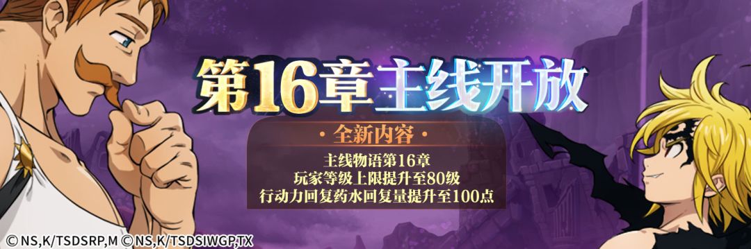 新主线物语:为了解救被十戒支配的卡美洛与里昂妮丝百姓,<七人传奇>踏上了前往要塞都市-柯兰德的旅途。路途上,梅利奥达斯发现伊丽莎白记忆逐渐复苏,便主动与大家讲述了他与伊丽莎白永劫轮回诅咒和组建<七人传奇>真正的原因,这让黛安感到深深的自责。但还来不及多想,大家就中了梅拉斯邱拉埋伏,被迫分散战斗。战斗如火如荼之际,心急的梅利奥达斯受怨念影响,解放不详魔力进入「歼灭状态」,艾斯卡诺自告奋勇阻止,一场魔神「最凶」vs人类「最强」的激战就此展开……