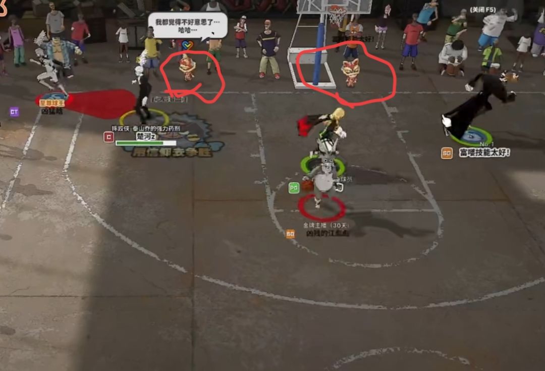 后续我觉得可以出宠物(比如小狗,小猫,企鹅等为主人加油,捡球等,如图6),坐骑(比如摩托车),可以同出三人组球员(比如:樱木,流川,晴子;球员可以以仙侠,五行,摇摆,流浪,忍者,富家子弟,西游等等,同队出场附加属性,互动等),希望也可以出两种形态的角色(被盖多次或者落后几分后人变话出另外一种形态等),角色可以出一些有点特别的。