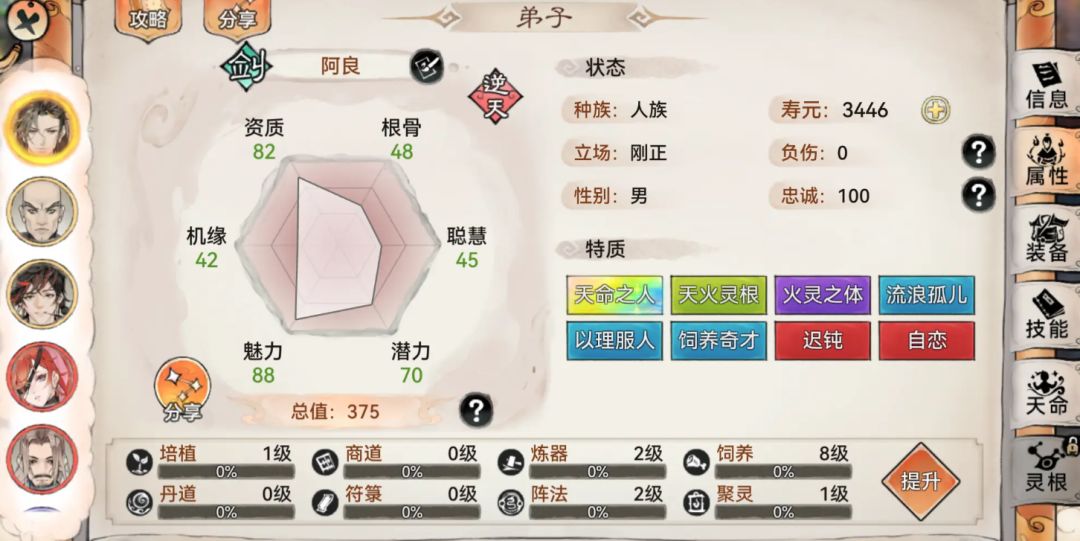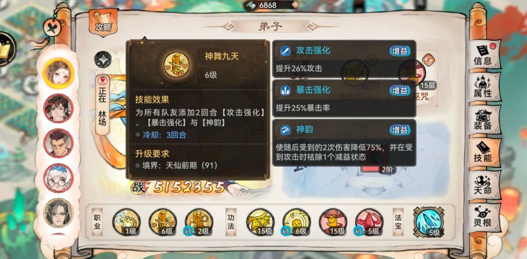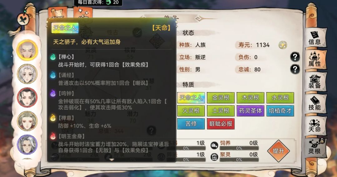 答:至少可以使用2个月左右,元润是最低成本(包含金钱和时间成本)可以到仙3的弟子,天命获取渠道有限,元润会长时间使用,等到退下来后还可以当二队的前排。