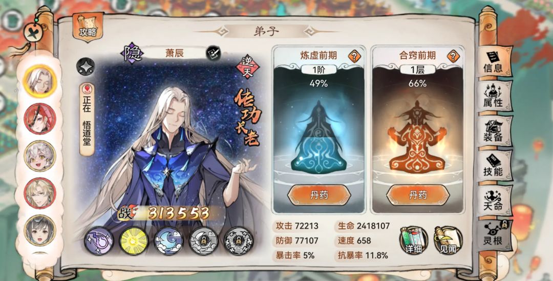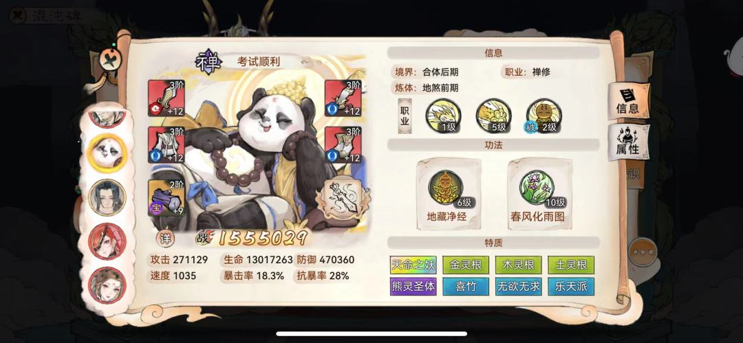 答:1、可以爬塔 2、禅的无敌保证可以站住 3、禅心第一回合免疫控制容错空间更大 4、灵根多后续有好功法都可以调整。