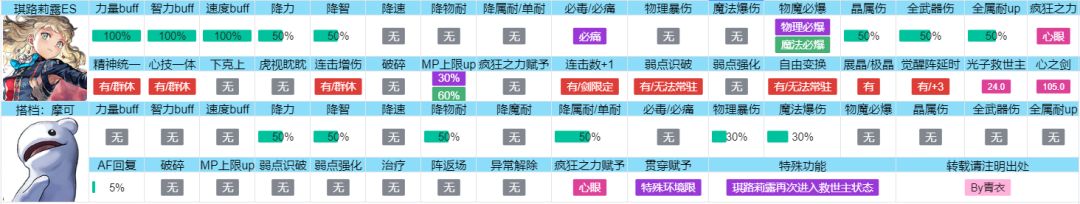 - 大额全属性伤害UP或晶伤UP(她提供50%,但依然有稀释提升空间)