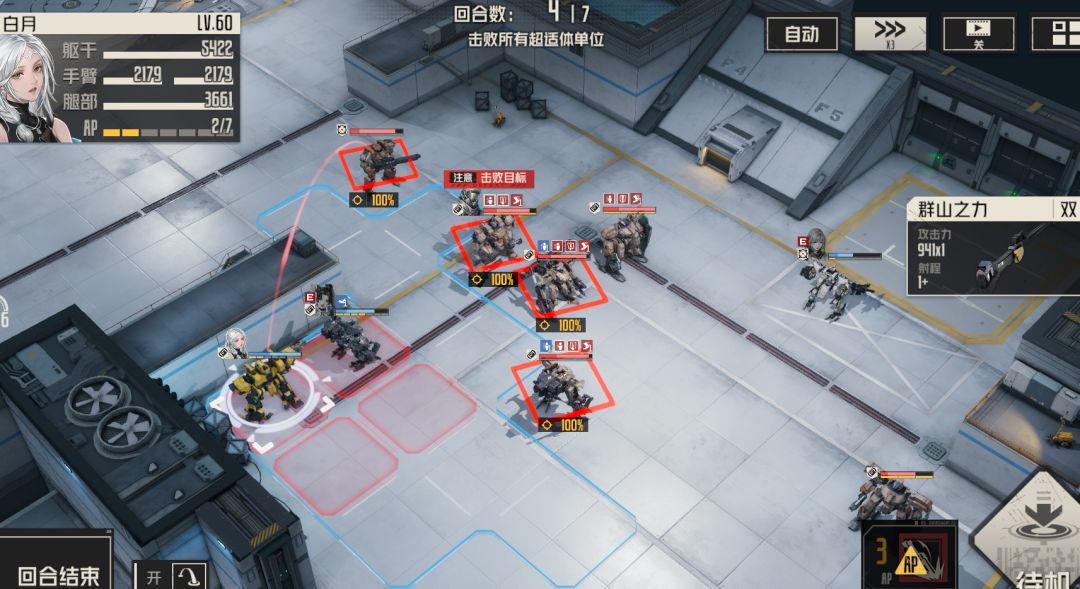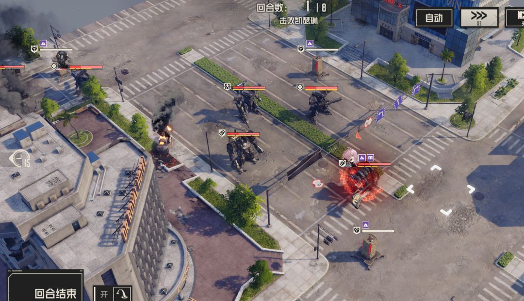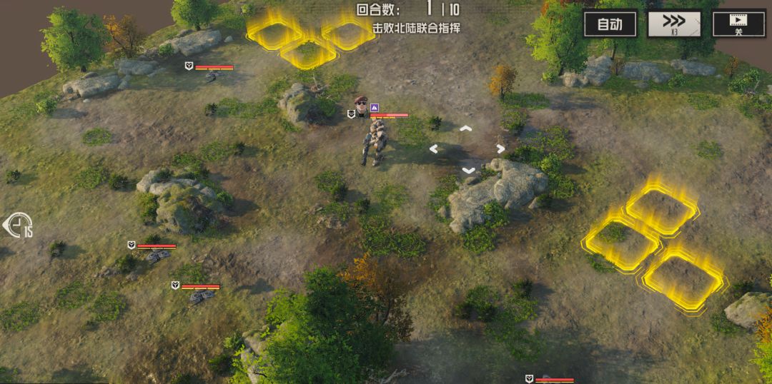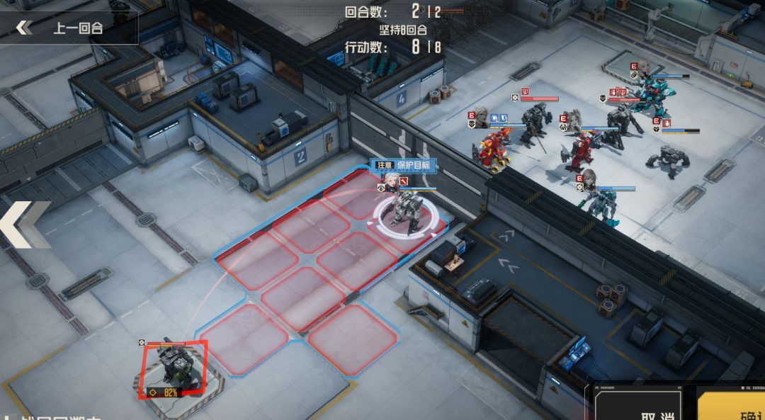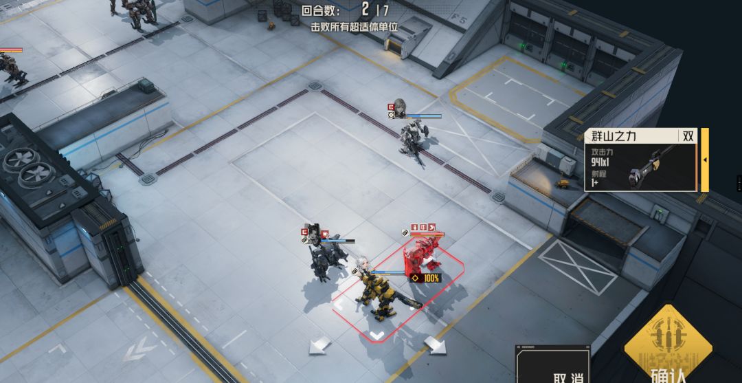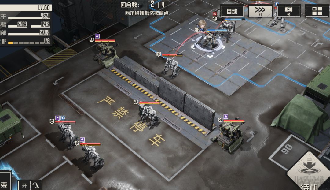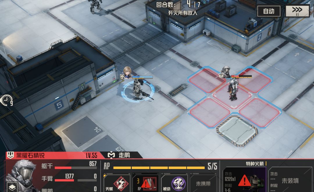 关卡分析:本关任务是消灭北陆联合指挥,同时要阻止无人机到达撤离点,难点在于地图上的无人机。其血量比较高,还会给boss提供增伤和减伤。而且数量非常多,boss每回合以及受到攻击时都会召唤出新的无人机,导致了无人机会源源不断地出现,进一步加大我方输出压力,需要兼顾清理无人机和攻击boss。