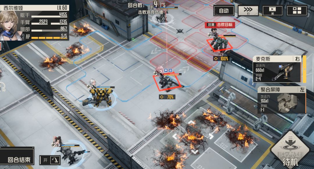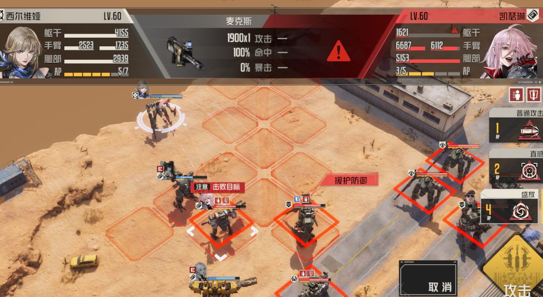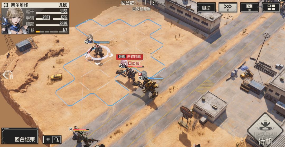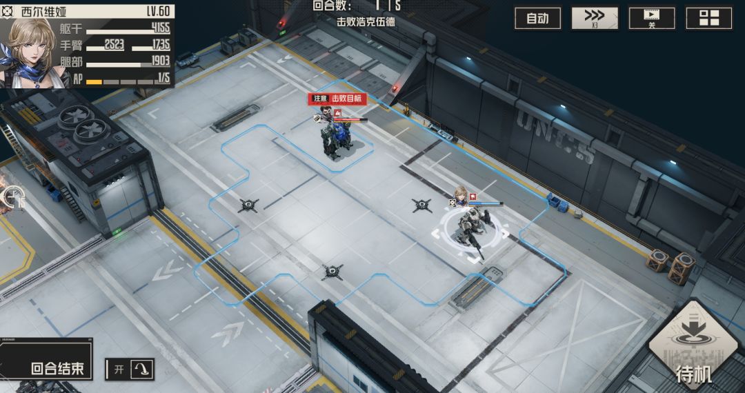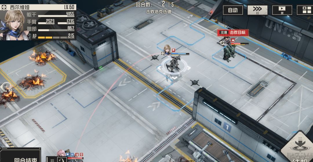 2、第二回合消灭第一个头目(有点困难,笔者凹了暴击才勉强达成),这样洛莎才能解锁大招,有足够伤害消灭狙击兵