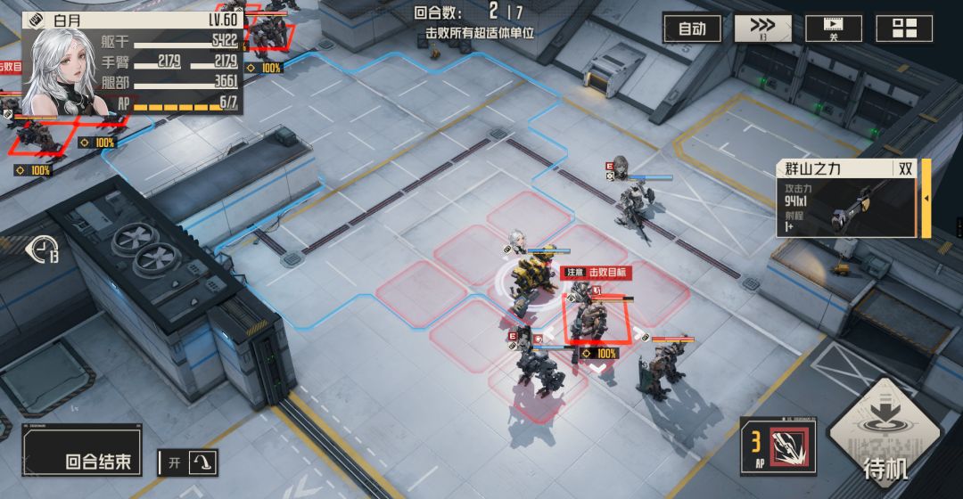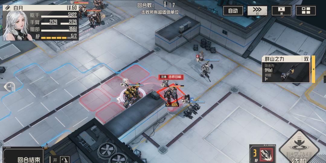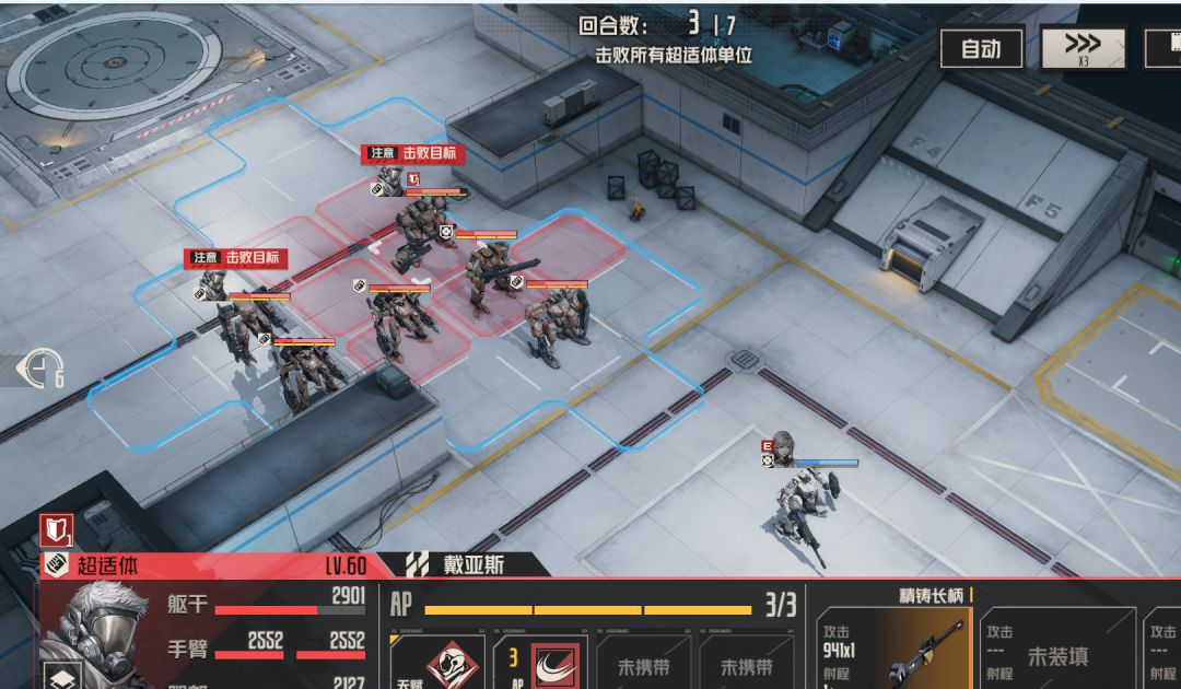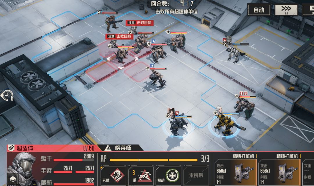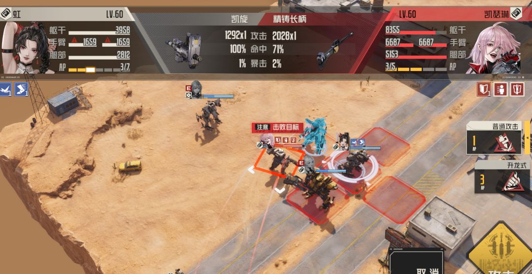2、第二回合消灭第一个头目(有点困难,笔者凹了暴击才勉强达成),这样洛莎才能解锁大招,有足够伤害消灭狙击兵