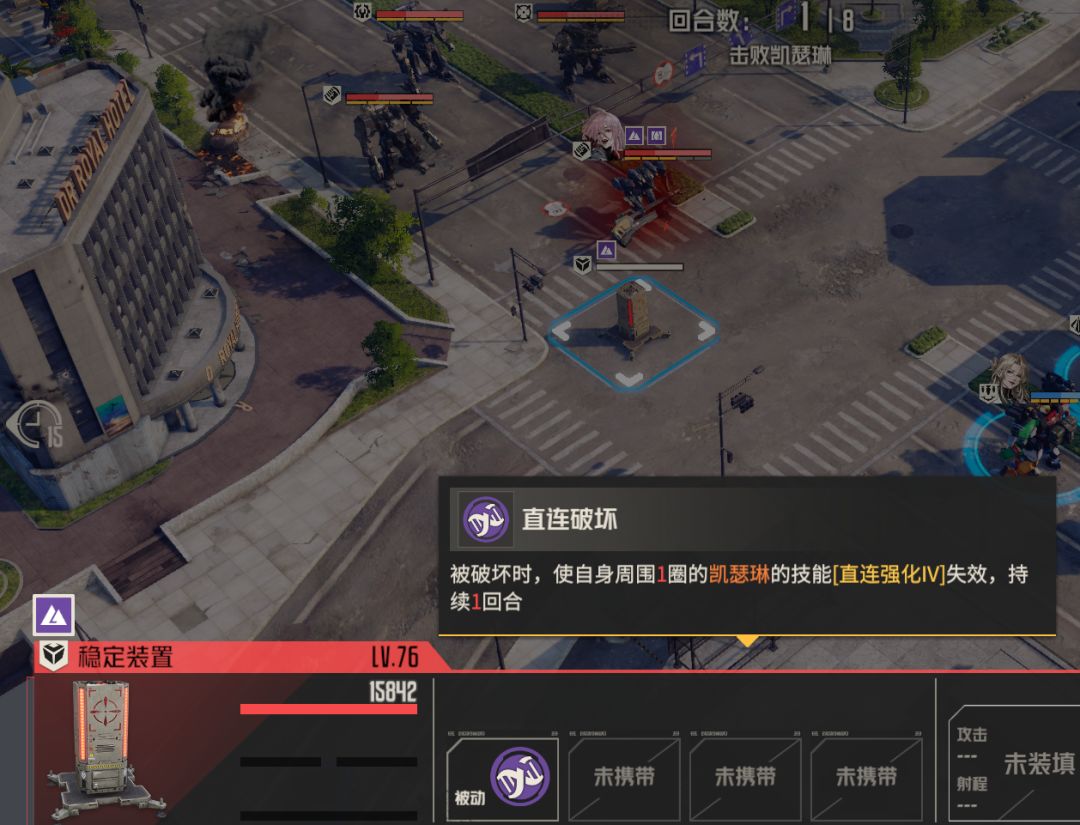 本关任务是消灭凯瑟琳。难点在于凯瑟琳初始拥有非常高的减伤和增伤,以及不俗的吸血量。需要通过破坏场上的装置来破除凯瑟琳的减伤,才能比较好地对付凯瑟琳