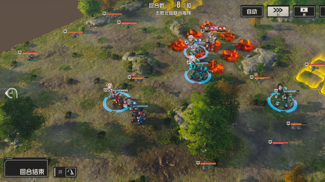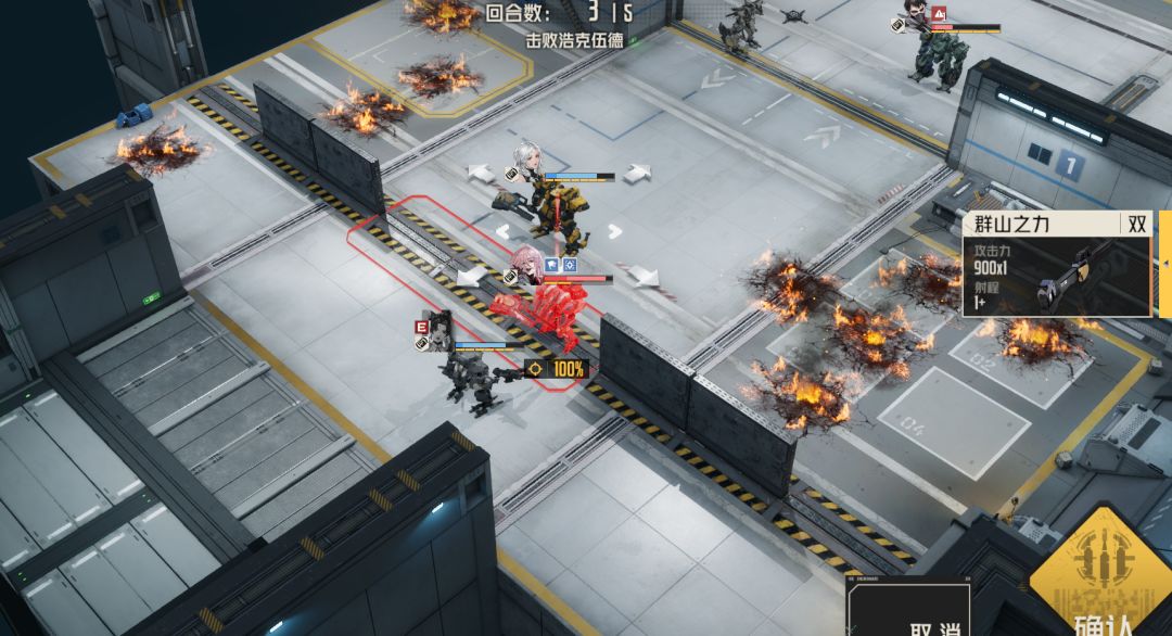 前面几个回合用石墨弹头和燃烧地形攻击一次boss,其余人都只清理无人机,不攻击boss