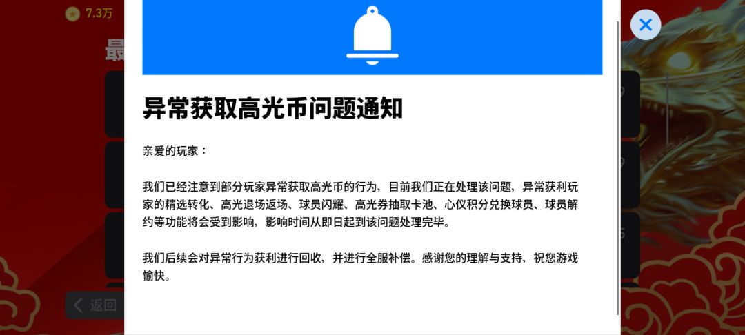 影响:事件爆出后,有一段时间所有玩家不能解约球员。该bug是新版本更新后已经存在,今天才陆续被绝大部分玩家知悉。
