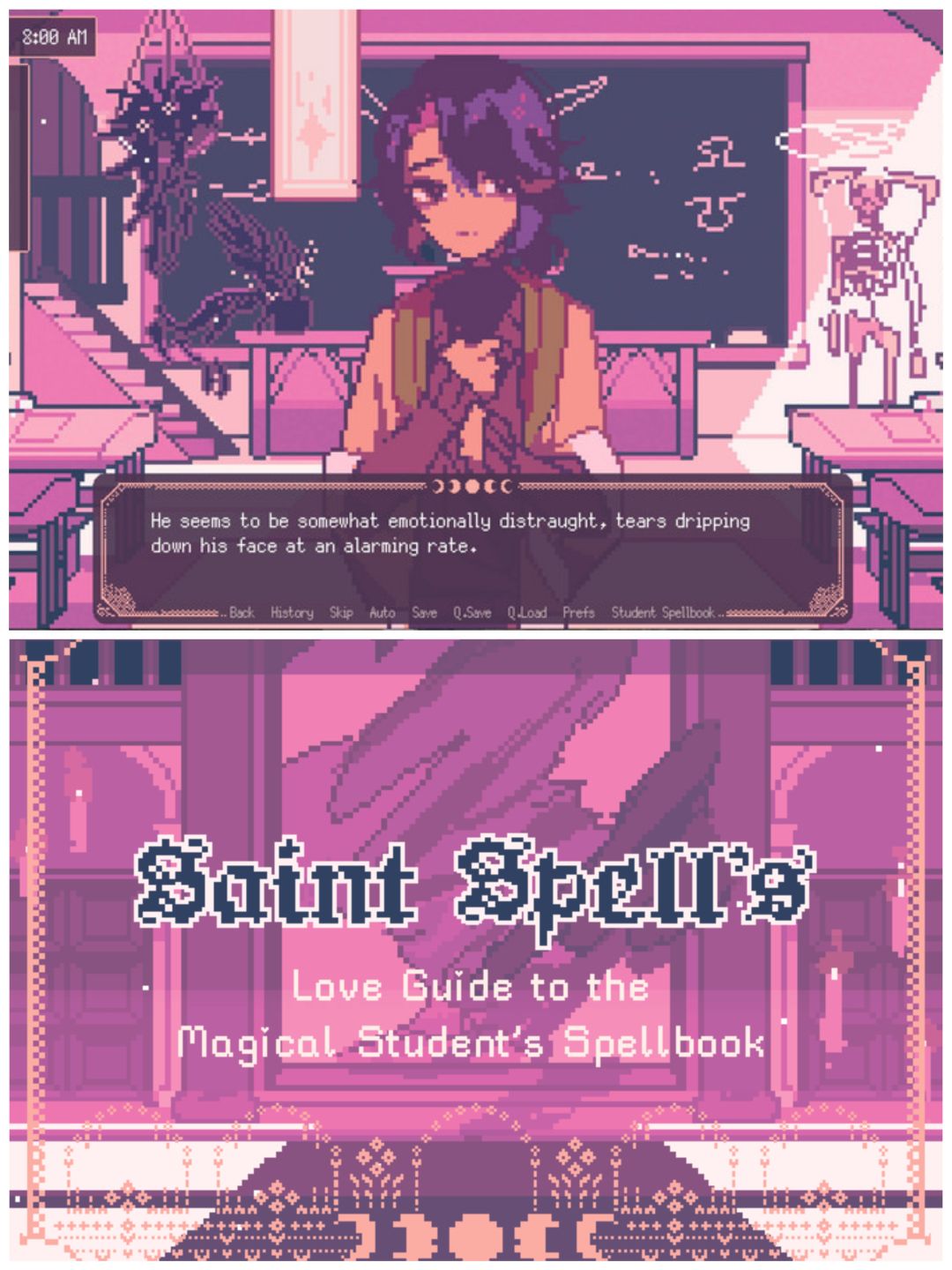 《圣咒法爱指南:魔法学生法术书》是一款免费游戏,故事背景发生在一个虚构的魔法学校,是一款约会和友谊模拟器。游戏采用视觉小说的风格,玩家通过角色和场景进行互动,并通过屏幕对话来解释故事情节。玩家通过对话选择与游戏中的角色进行互动。