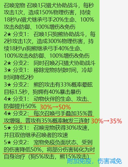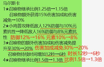 2.增益:召唤物的额外伤害加成和减免从原来的30%降低到20%