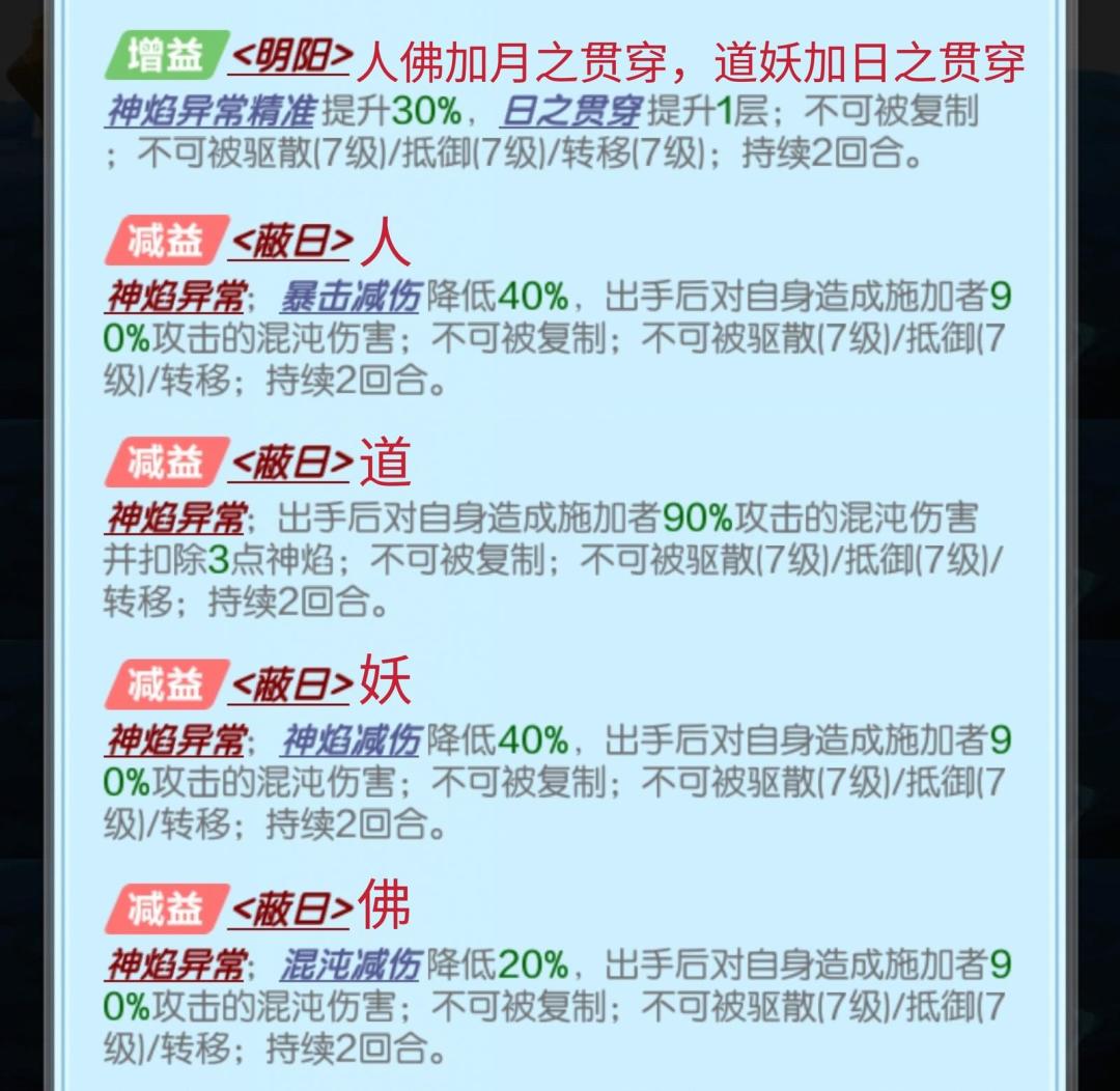 (1).加减神焰与阴阳印记是通用效果,因此妖、佛族在有不低于主核星级的赵公明时,也可以用道幻化。
