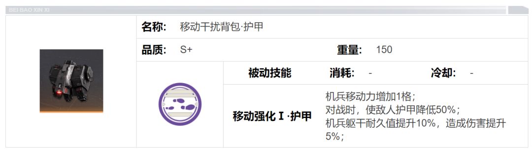 然后移动类复合背包中还有“移动弹道”和“移动破甲”两个也是可以考虑的,不过这两个就需要考虑场合了,一般面对重甲类型的敌人,或者小飞机召唤物这种敌人,破甲的增伤效果是非常不错的,但对于轻甲和中甲敌人而言,突击角色带弹道的威力相对会更有保障,大家可以根据自己的使用习惯来做取舍。