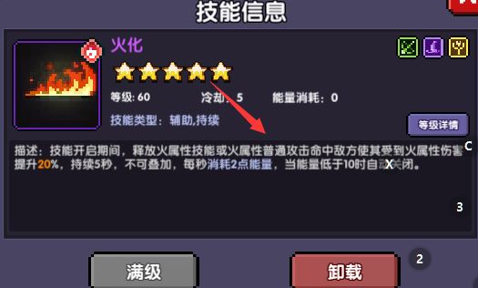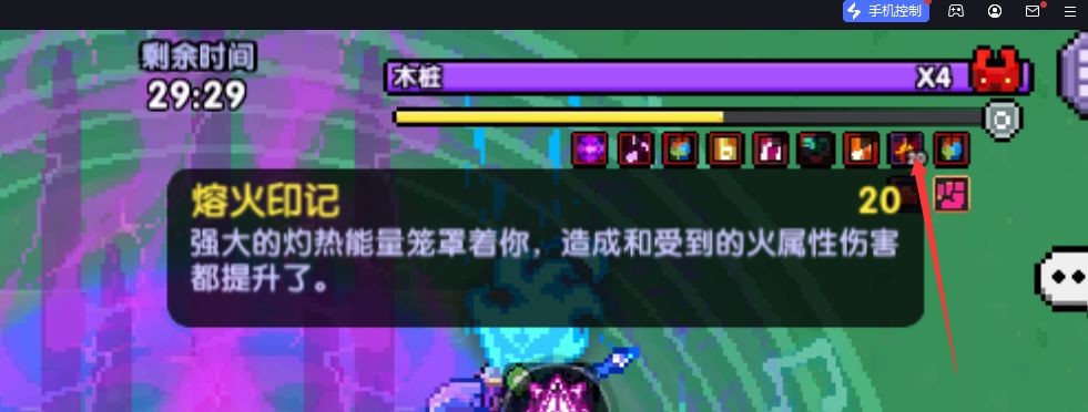 如图所示,箭头所指武器为火属性攻击。