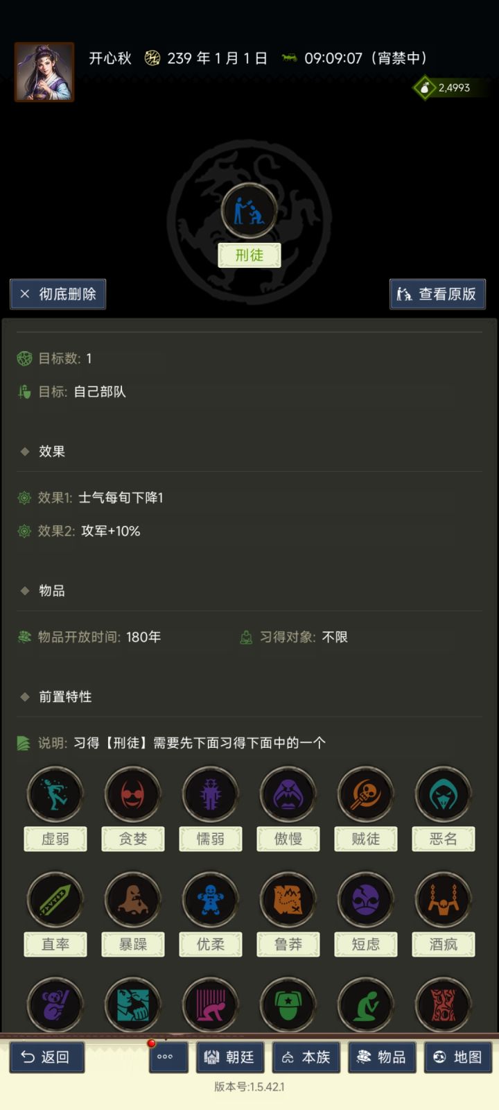 作为基础的普通(绿色)兵种,刑徒可以升级为长矛兵、刀盾兵等稀有(蓝色)兵种。但是刑徒的核心特点绝不仅仅于此,他可以定向消掉一个负面特性,堪称是特性遗忘丹PLUS。