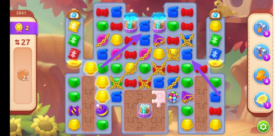 既然每个阶段的目标任务都是需要收集长条火箭。那么在游戏中,我们要寻找机会通过匹配元素来制作更多的火箭 。当然最快的方法就是用彩虹球和长条火箭组合,当彩虹球和长条火箭触碰以后,那么随机生成的火箭便可以让你在每个阶段完成目标能更快一点哈!