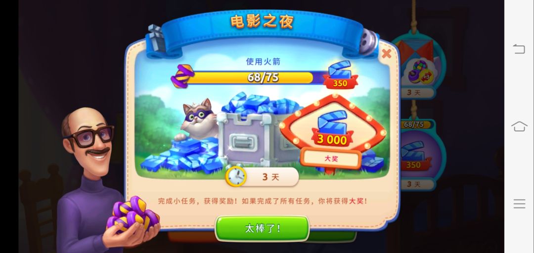 电影之夜怎么玩呢?电影之夜主要需要完成每个阶段的小任务即可领取相对应的目标奖励。最高可以获得3000场记板。每一阶段都是需要收集不同数量的长条火箭,当你完成每个阶段的目标任务以后,在闯关成功开始结算的时候,就可以领取目标奖励。这次的奖励里面就有场记板哦!
