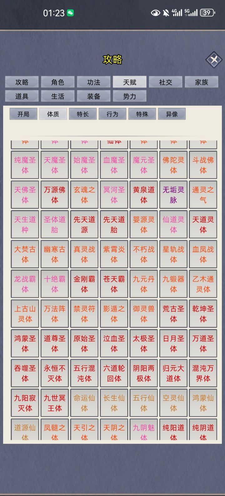 注意到,鬼体和佛体体质类型变成8,同时苍天霸体和金刚霸体变成红体。