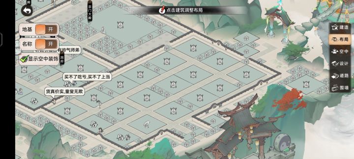 作为苦逼零氪宗主上不了进度,闲来无事发现门中很乱就布局了一下。在这里给各宗门宗主分享。布局很简单把建筑摆上,剩下的空格您喜欢什么就摆什么,如您喜欢我的布局并且还用上了,是我的荣幸。如我有新的布局会分享到评论区,也很欢迎各位宗主能分享自己的布局。说不定我也会用上您的嘿嘿嘿