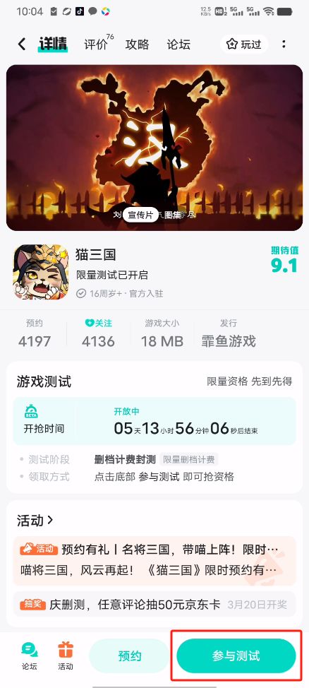 需要参与测试的主公请尽快前往游戏详情页,点击“参与测试”即可成功获取测试资格。