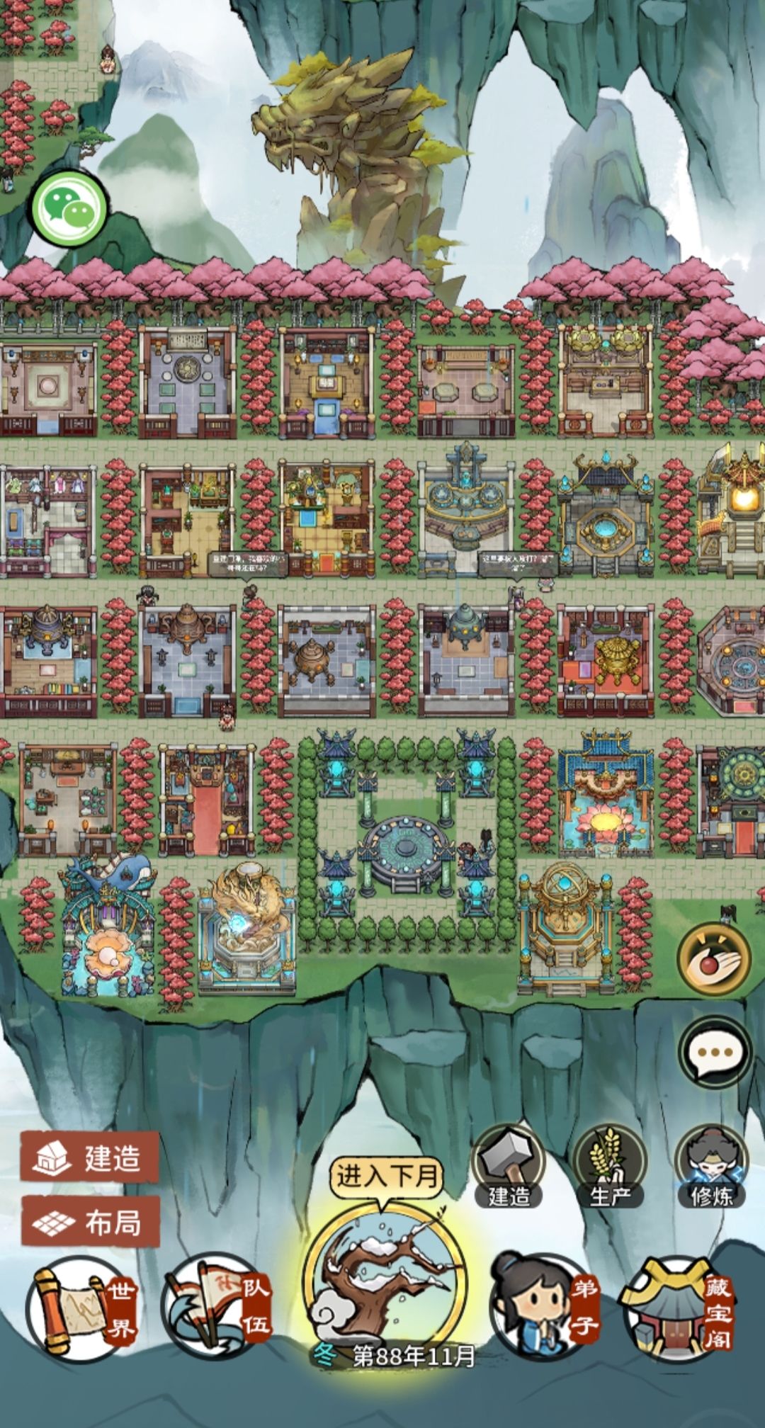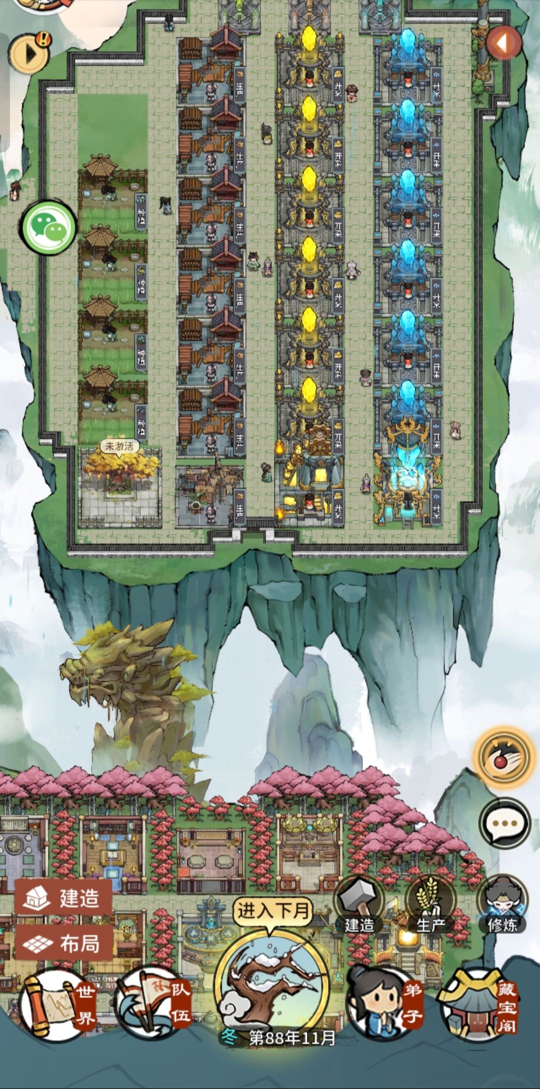 3.修行区,弟子打桩,秘境锻炼区(秘境区等建完最后一个再重新美化一下)。