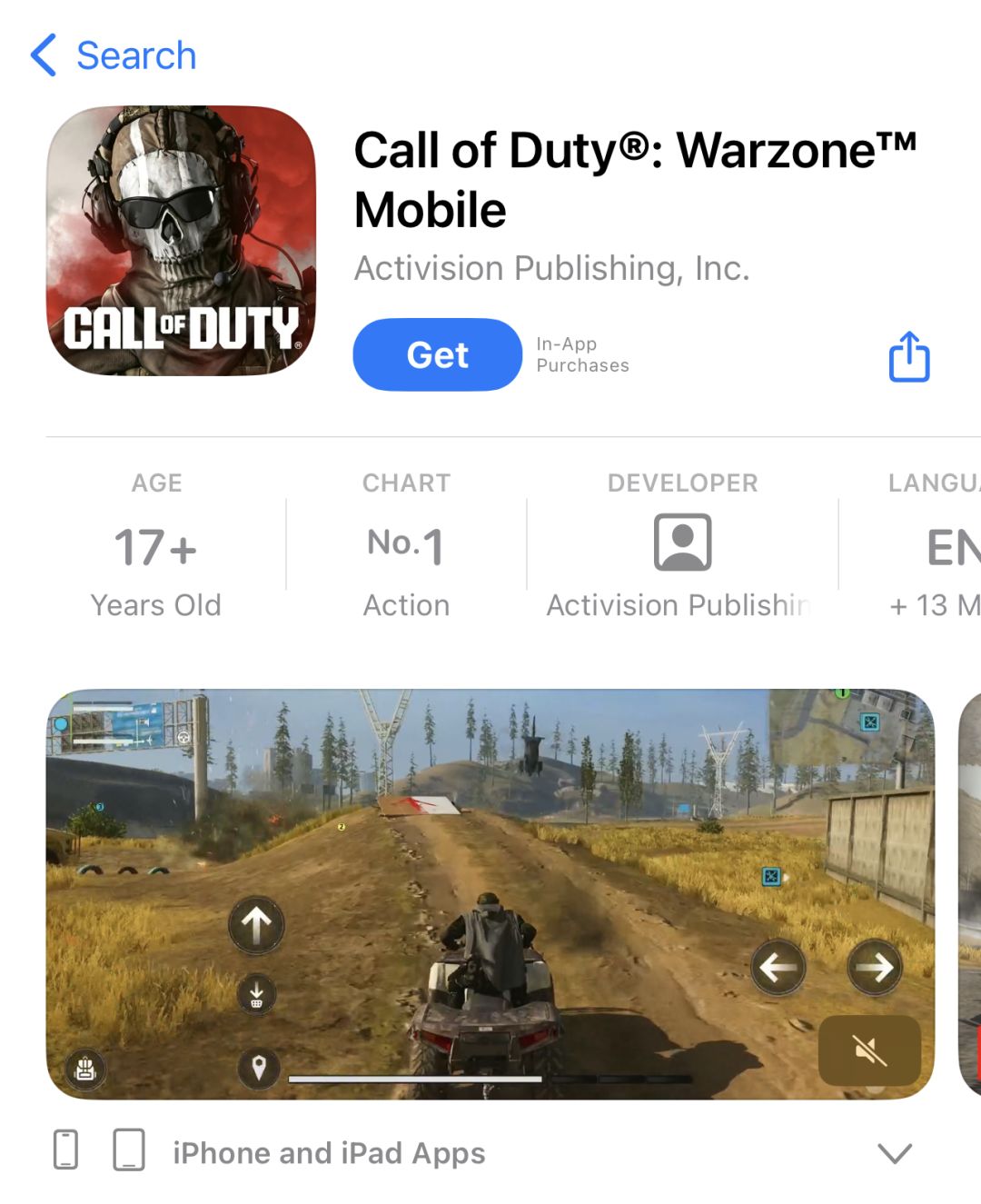 2、在AppStore里登录上澳大利亚或者马来西亚地区的Apple ID 搜索【Warzone Mobile】即可下载游戏