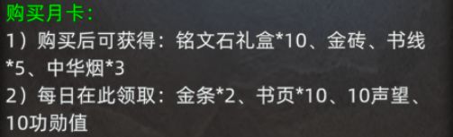 不仅如此,购买月卡后赠送的铭文礼盒,里面会送10个同职业的铭文石(你是战士就是10个圣战铭文石,以此类推),这些铭文石的价格不菲,尤其是刚开区的时候,每个不会低于400元宝一个,10个就是4000元宝。