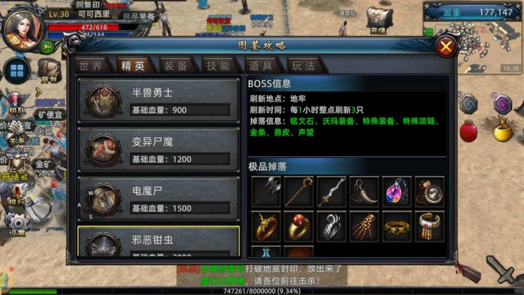 下图刷怪要注重游戏内精英及以上的怪物,这两种怪的爆率比较高,容易出好装备、好材料。