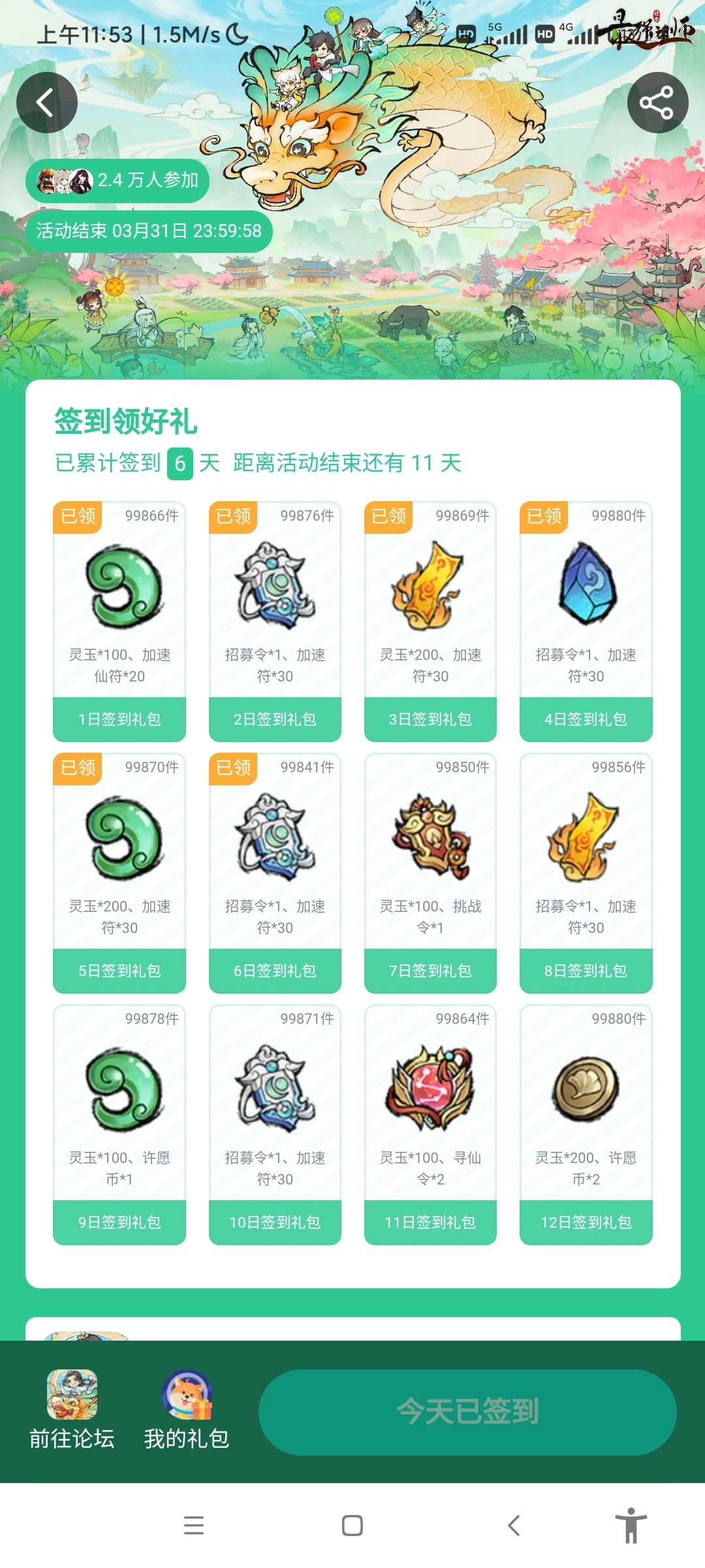 这里面会给很多灵玉,因为我这个开的小号是测试用的,我也就没领,都给主号了,如果想培养主力号的可以去领取。