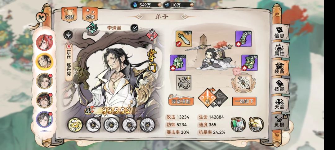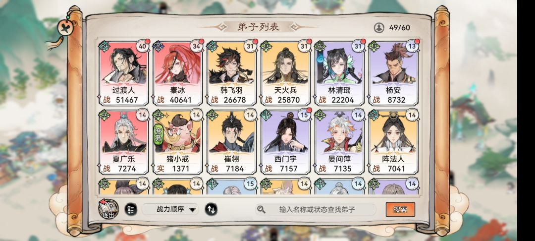 到了15级后可以招募禅修和隐士弟子了,这两个都是不错的前排