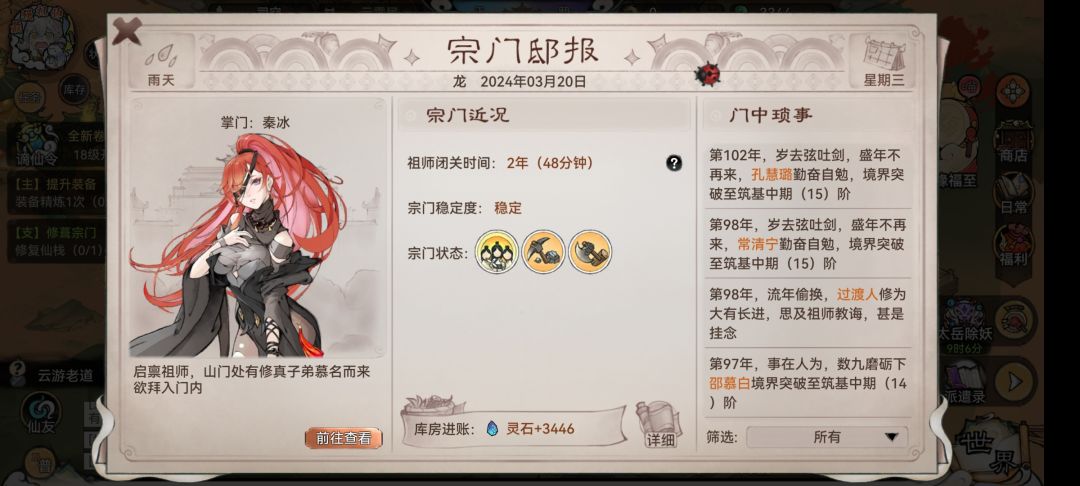 如果你在昨天没有抽到好用的兵修弟子,或者说你如果在今天抽到了带火灵根的禅修或者隐士弟子