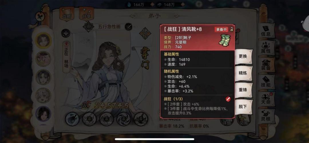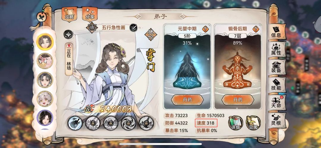 当给画掌门位置增加5点根骨的情况下,速度来到了318点
