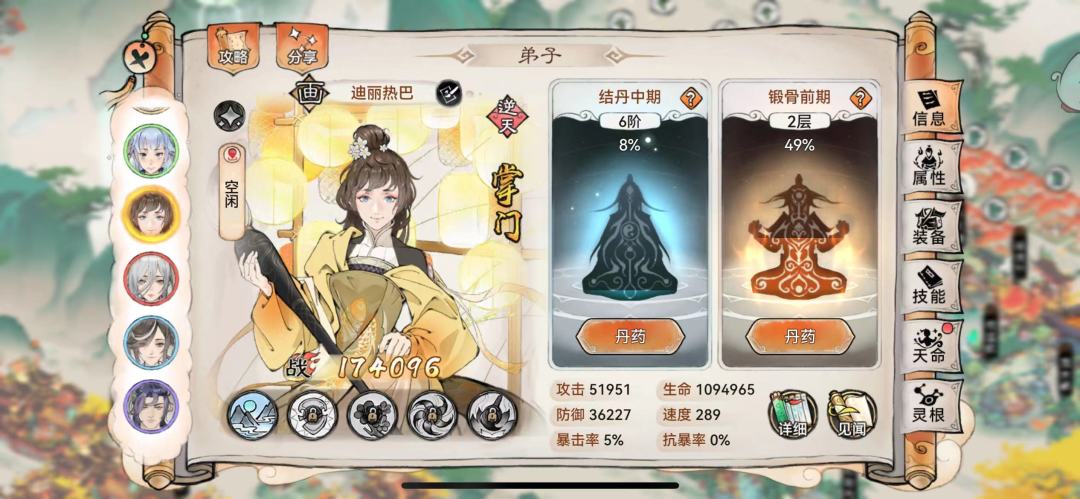当改为掌门增加5点潜力后,按照之前的结果计算