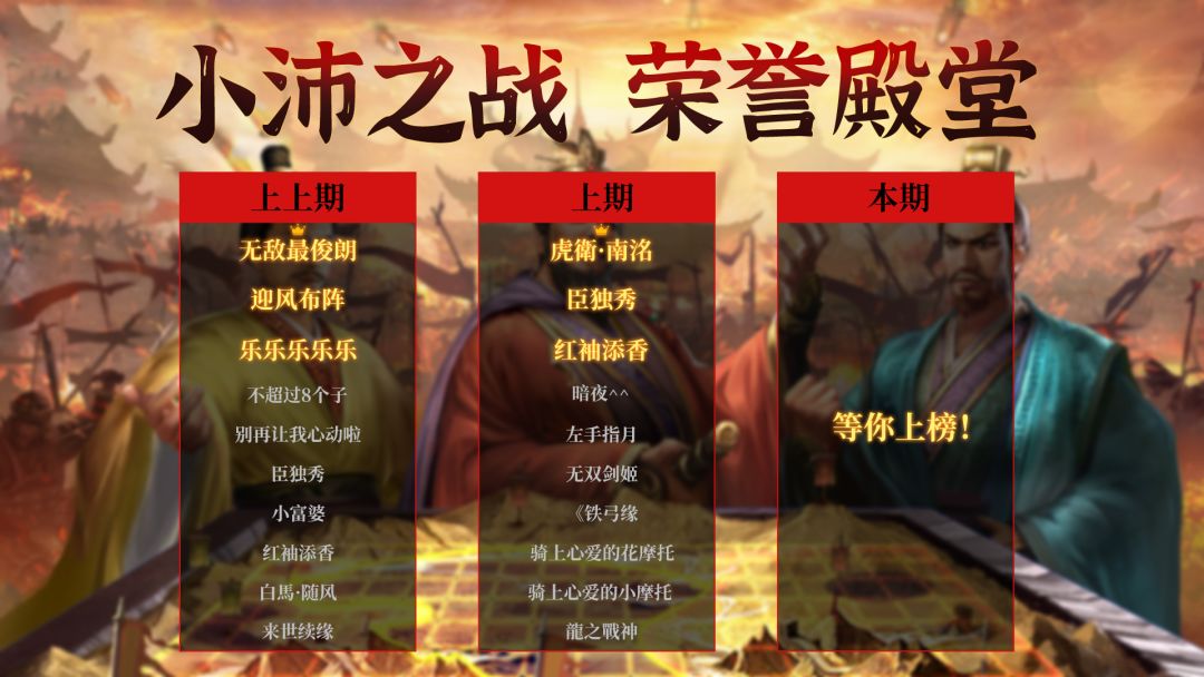 上期小沛之战荣誉殿堂,恭喜各位榜上有名的主公们~