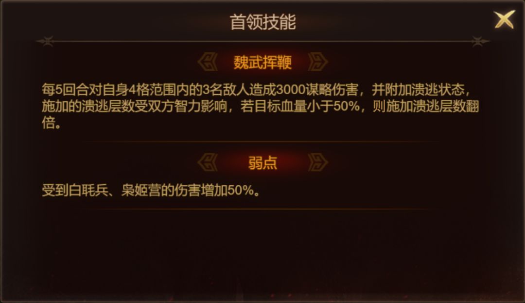 ● 首领“曹操”受到 白毦兵、枭姬营 克制;