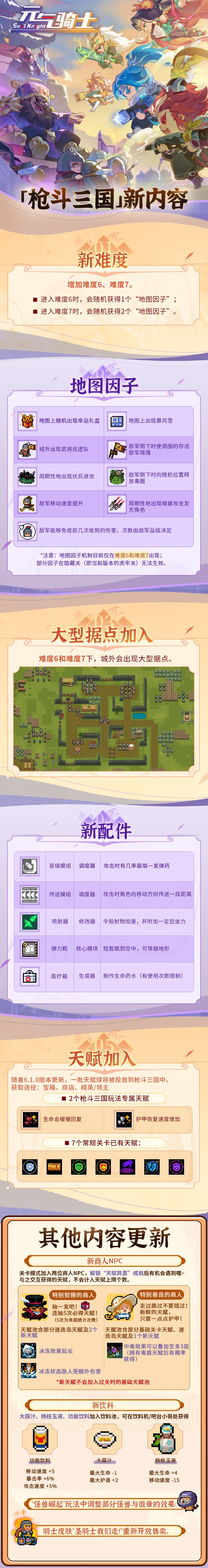 【元气骑士更新预告03】「枪斗三国」新难度,配件&天赋补给上新