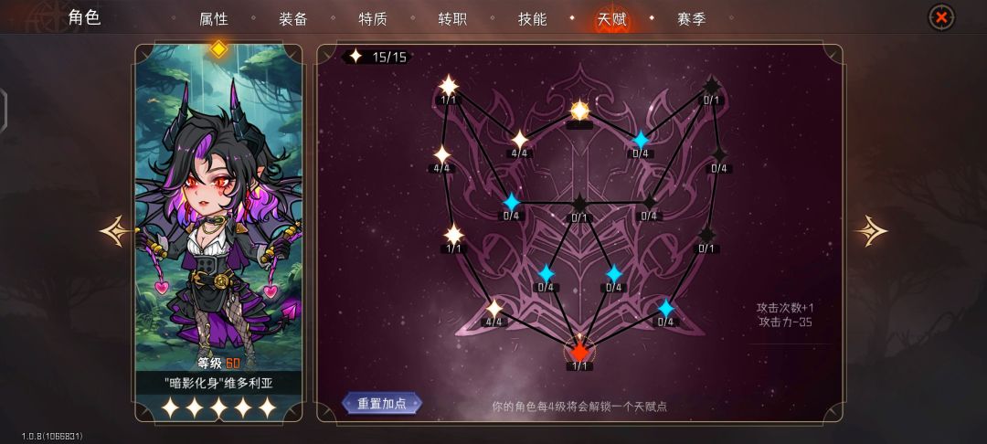 天赋方面,攻击次数和减冷却是本人强力推荐的方案,配合复仇之叹可以令幻影刃等辅助技变成1冷却,每回合都能使用一次。