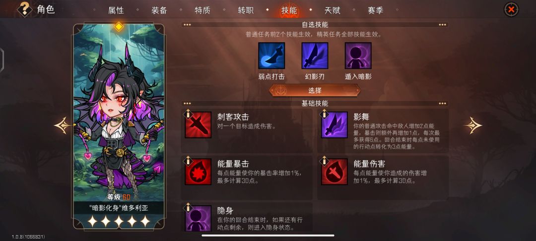 a. 弱点攻击+幻影刃+遁入暗影。这是一套方便挂自动的方案,这套方案不能点移动力,不然刺客会脱节容易死亡。下限高,叠层反面于另一套而言较慢一点。