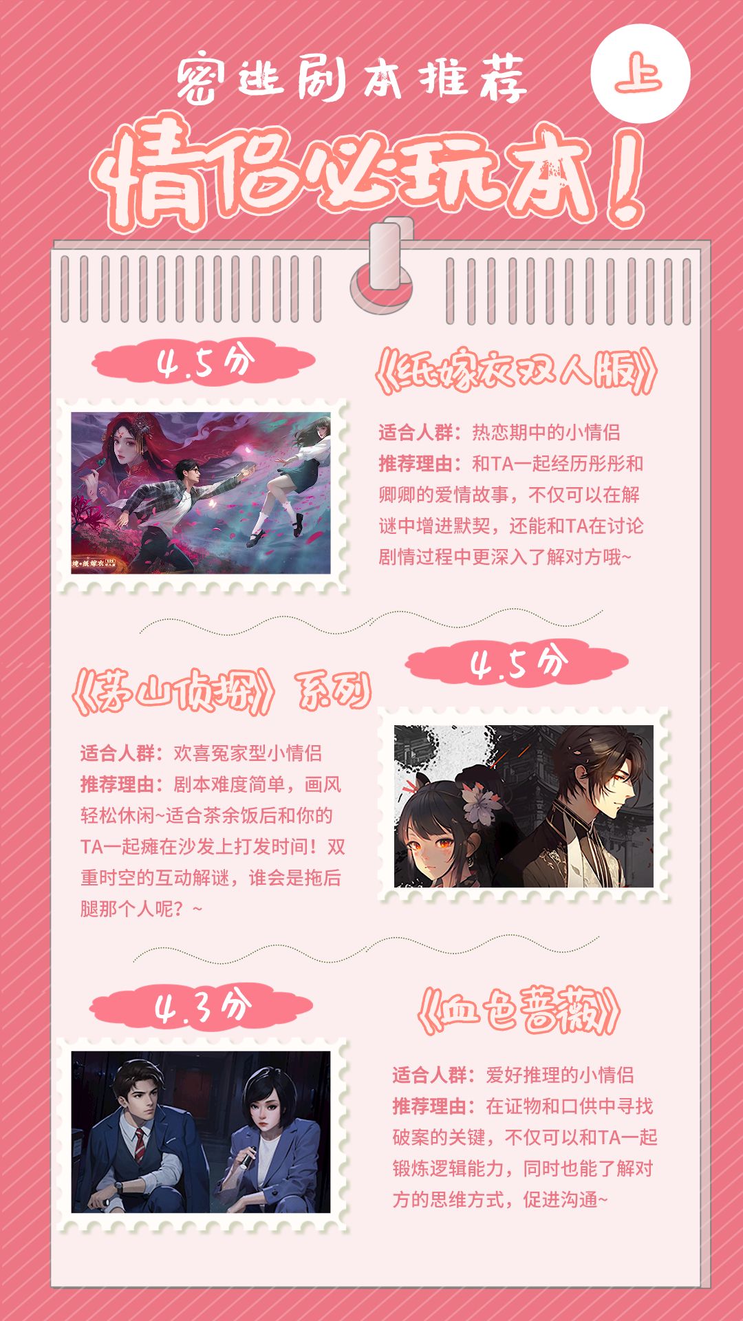 小谜特地为谜友们精选了一些情侣必玩剧本,希望这些游戏能够成为你们感情升温的催化剂呀!